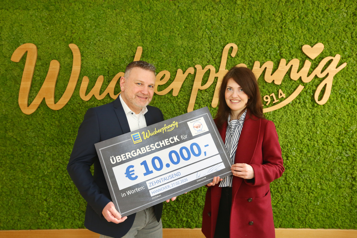 Vom 01. Dezember 2025 bis zum 31. Januar 2026 konnten die Pfandbeträge an unseren Leergutautomaten für die HAZ-Weihnachtshilfe gespendet werden. In diesem kurzen Zeitraum haben die Kundinnen und Kunden knapp 10.000€ gespendet, die Thorsten und Stefan Wucherpfennig auf die volle Summe aufrundeten. HAZ-Chefredakteurin Dany Schrader freute sich bei der Scheckübergabe am 27.02.26 sehr über diese großzügige Spende.